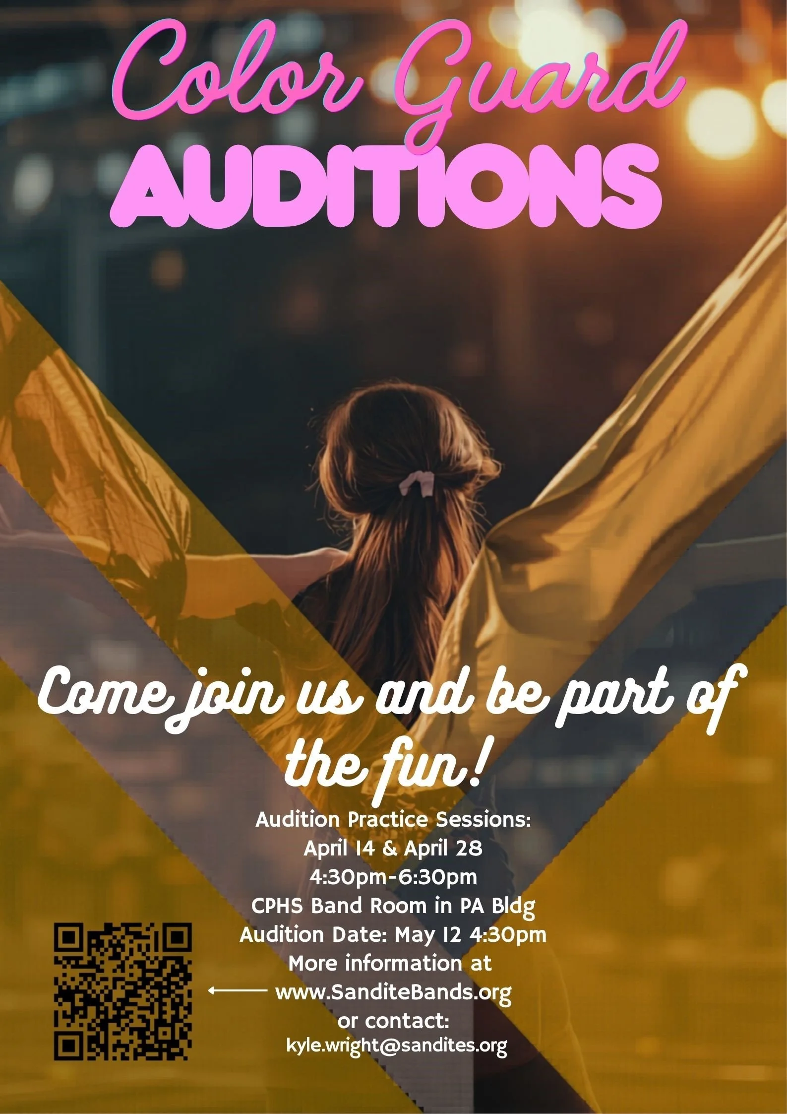 Meet in the Performing Arts Bldg at CPHS (at the stadium) 4:30-6:30pm.